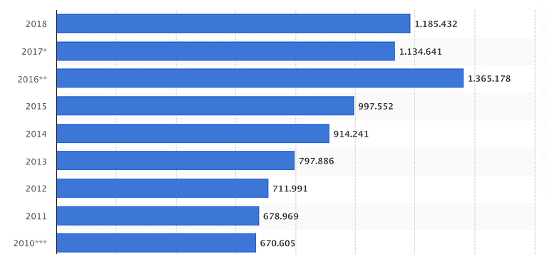 Anzahl der Auswanderer aus Deutschland von 2010 bis 2018 - Statista