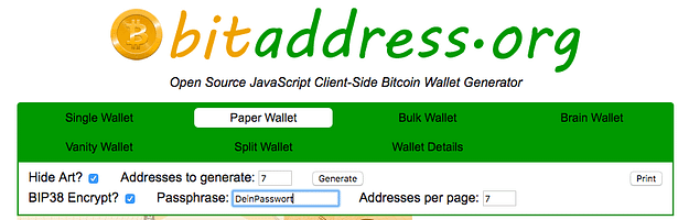 Paper Wallet erstellen